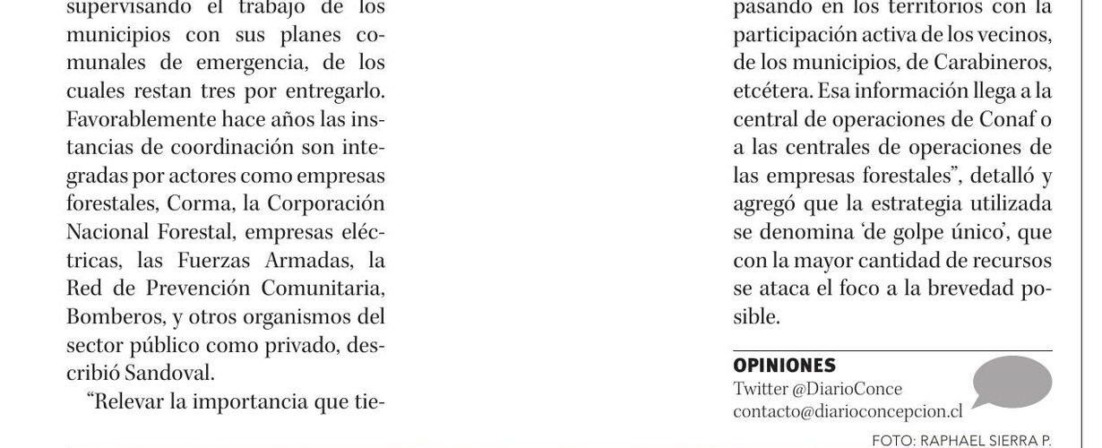 Noticia en Diairo Concepción informa acerca de la mayor probabilidad de incendios forestales este verano por altas temperaturas y vientos.