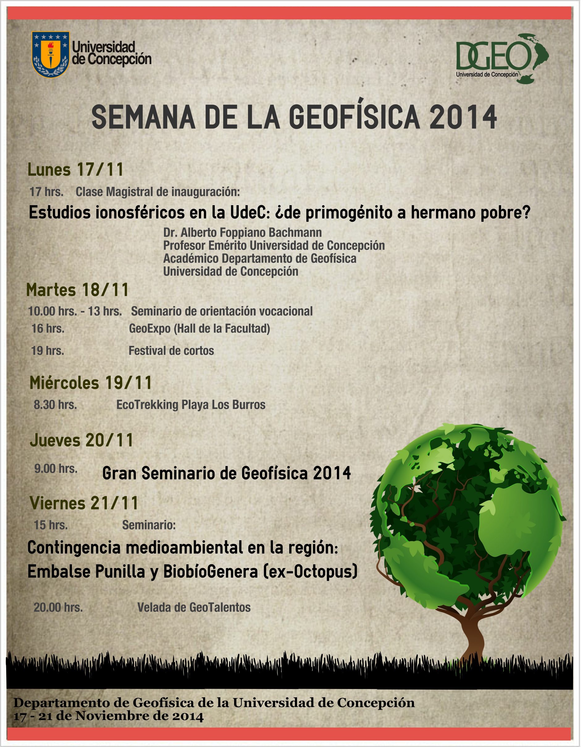 - 9.00 – 20.00 hrs: II Gran Seminario de Geofísica