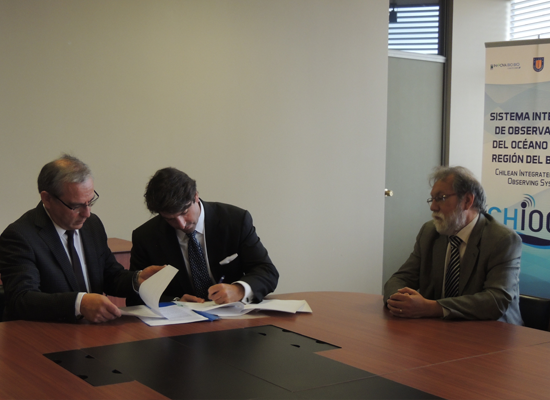 Mediante un memorándum de entendimiento firmado entre el Vicerrector de Investigación y Desarrollo de la UDEC Dr. Carlos González y el presidente de la empresa estadounidense EOS Investments, Colin Williams, se estableció un acuerdo de mutua colaboración, donde por un lado, la empresa patrocinará al proyecto Chilean Integrated Ocean Observing System (CHIOOS), y por otro lado, también tendrá acceso a los datos de las observaciones oceanográficas que se obtengan, en las costas de la región del Biobío.