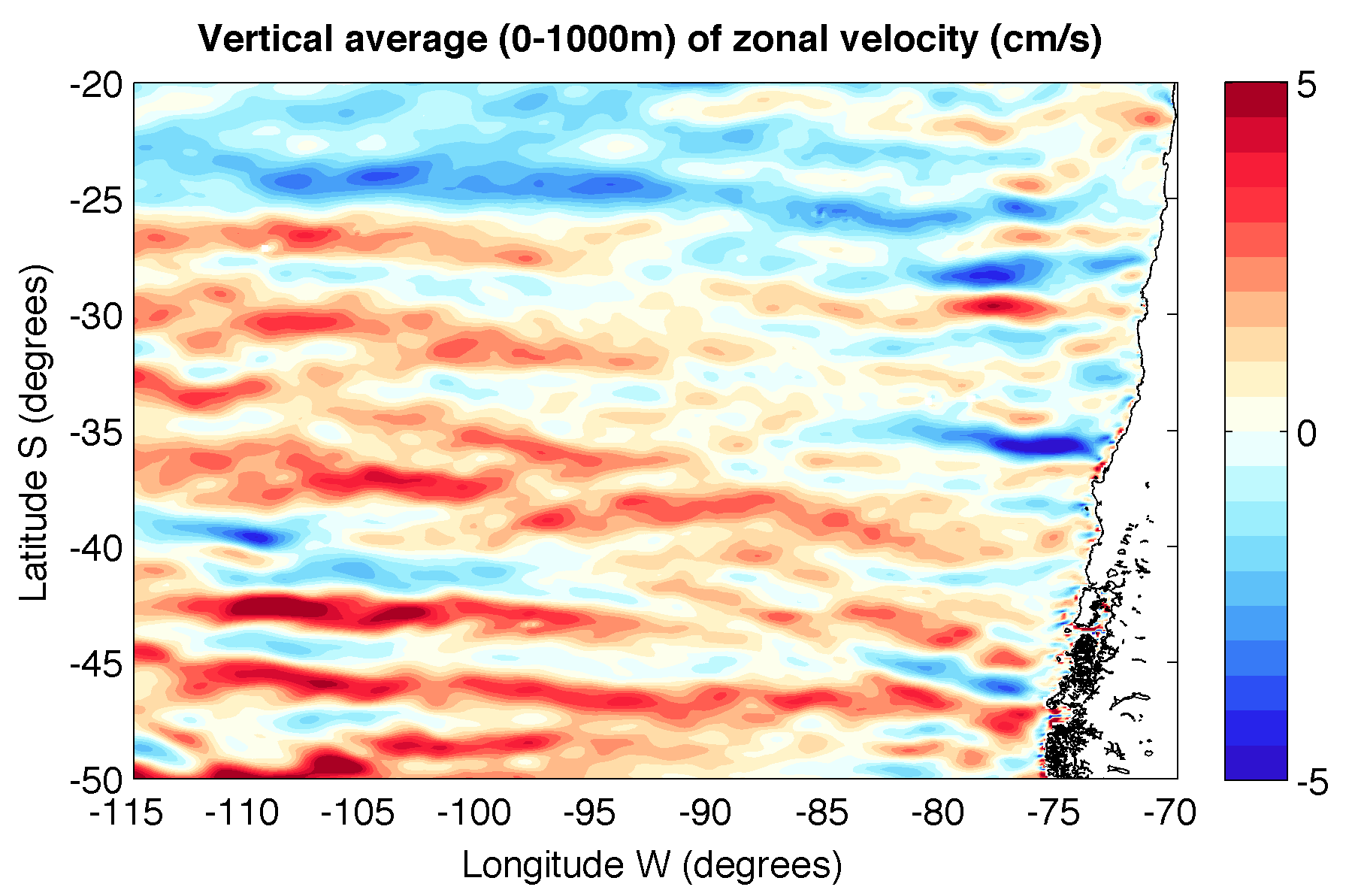 Las estriaciones son corrientes persistentes que fluyen alternadamente en sentido este – oeste, con una escala norte/sur del orden de 400 km, y que se extienden sobre miles de kilometros en sentido este/oeste y cientos de metros en la vertical. Dichas corrientes podrían ser capaces de transportar y mezclar propiedades físicas y químicas, como la temperatura, la salinidad y el oxígeno, y contaminantes como derrames de petróleo y desechos marinos, asi como modificar propiedades de la atmosfera (vientos, nubes, precipitaciones), con implicaciones potenciales para los ecosistemas marinos, las pesquerías y el clima. “Estas corrientes revisten particular importancia en Chile porque se producen de una manera especialmente marcada frente a la costa central del país, en el Pacífico Sur-Oriental”, explica Belmadani.