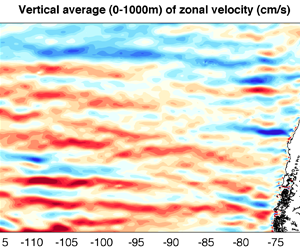 Las estriaciones son corrientes oceánicas persistentes, que fluyen alternadamente en sentido este – oeste, con una escala norte/sur del orden de 400 km. Dichas corrientes podrían ser capaces de transportar y mezclar propiedades físicas y químicas – como la temperatura, la salinidad y el oxígeno- y contaminantes, tales como derrames de petróleo y desechos marinos. También serían capaces de modificar propiedades de la atmósfera (vientos, nubes, precipitaciones), con potenciales implicancias para los ecosistemas marinos, las pesquerías y el clima. “Estas corrientes revisten particular importancia en Chile porque se producen de una manera especialmente marcada frente a la costa central del país, en el Pacífico Sur-Oriental”, explica Belmadani. Por otra parte, los remolinos son corrientes oceánicas casi-circulares, similares a los sistemas frontales en la atmósfera, o incluso a los huracanes (aunque no constituyen ningún peligro), con un diámetro típico de 100 a 300 km, y destacados por su rol fundamental en la redistribución de calor y de producción biológica en los océanos.