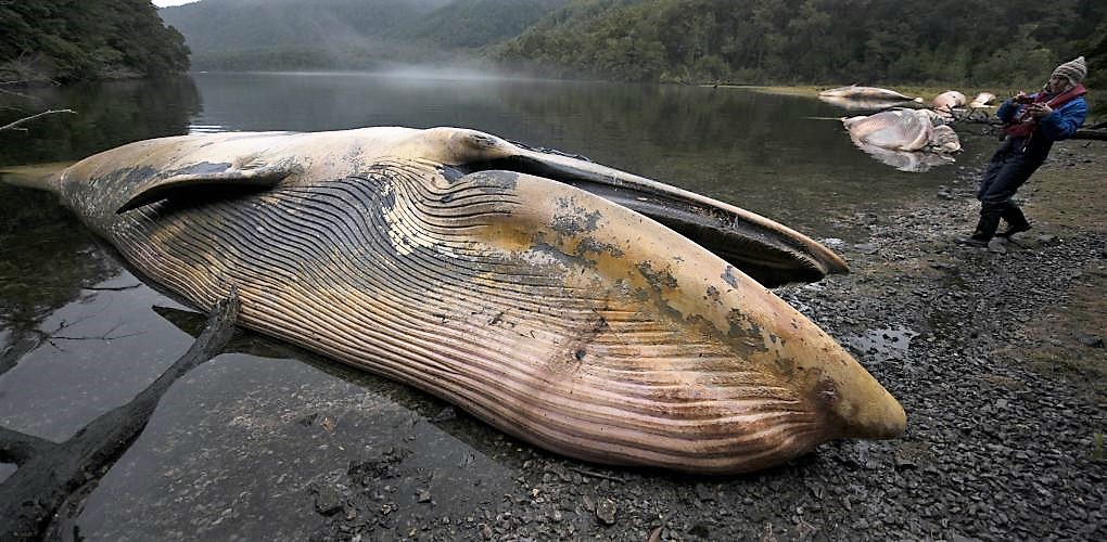 Las 343 ballenas encontradas muertas entre abril y mayo de 2015 en las cercanías del Golfo de Penas, fallecieron debido al consumo de langostas “contaminadas” con microalgas tóxicas, fenómeno conocido como “marea roja”. Situación que se produjo en el contexto de un evento climático El Niño, que aumenta la temperatura del mar y la proliferación de estas algas.
