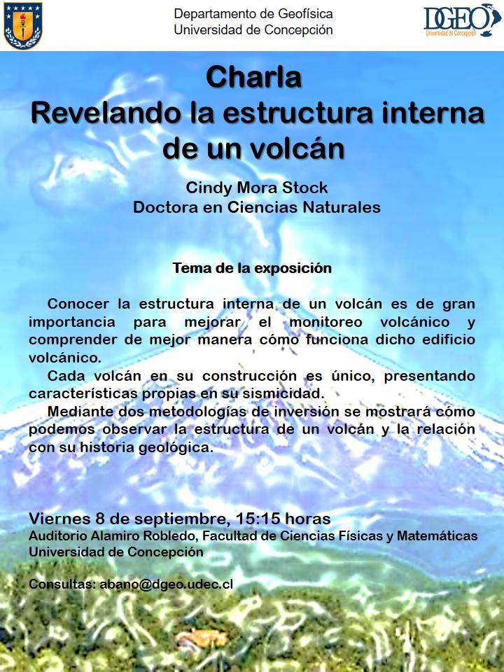 La doctora en Ciencias naturales Cindy Mora Stock, del Departamento Ciencias de la Tierra ofrecerá la interesante exposición referida a la estructura interna de un volcán, en el marco de la actual situación de alerta amarilla que mantienen los volcanes Copahue y Nevados de Chillán.
