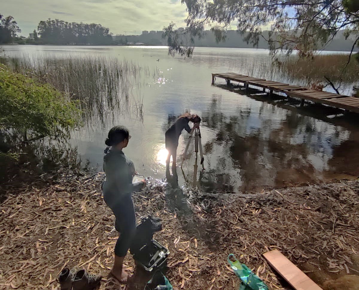 Ambas investigadoras se trasladaron a las lagunas Chica y Grande de San Pedro de la Paz para continuar con el trabajo de georreferenciación y de instalación de regletas en éstas y las otras lagunas y lagos que serán medidos en Bío Bío: Lanalhue, Junquillar y Antihuala.