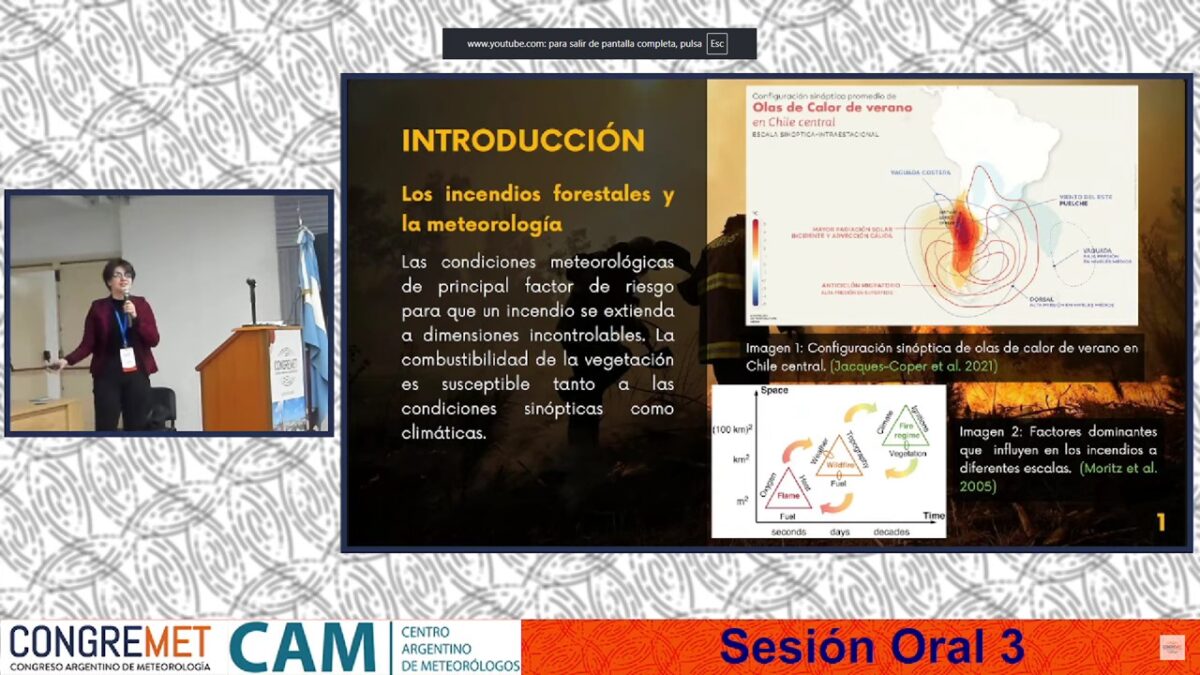 La estudiante Natalia Ruiz expuso el miércoles 1 de octubre la investigación titulada “Configuraciones sinópticas asociadas a grandes incendios forestales en Chile centro sur”. Su trabajo se centra en identificar los patrones atmosféricos a gran escala que favorecen la propagación de megaincendios, información vital para mejorar los sistemas de alerta temprana y gestión de riesgo de desastres.