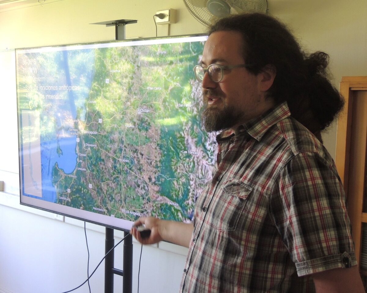 La actividad se desarrolló durante todo el día en la Sala de Reuniones de Geofísica y se enmarcó en el proyecto ANID/FONDECYT “Wildfires and Weather Variability in South-Central Chile (INTENSE)”. Y a él asistieron profesionales del Servicio Meteorológico de la Armada y de CONAF, además de estudiantes de Geofísica, del magíster de la especialidad e investigadoras e investigadores de las geociencias en general.