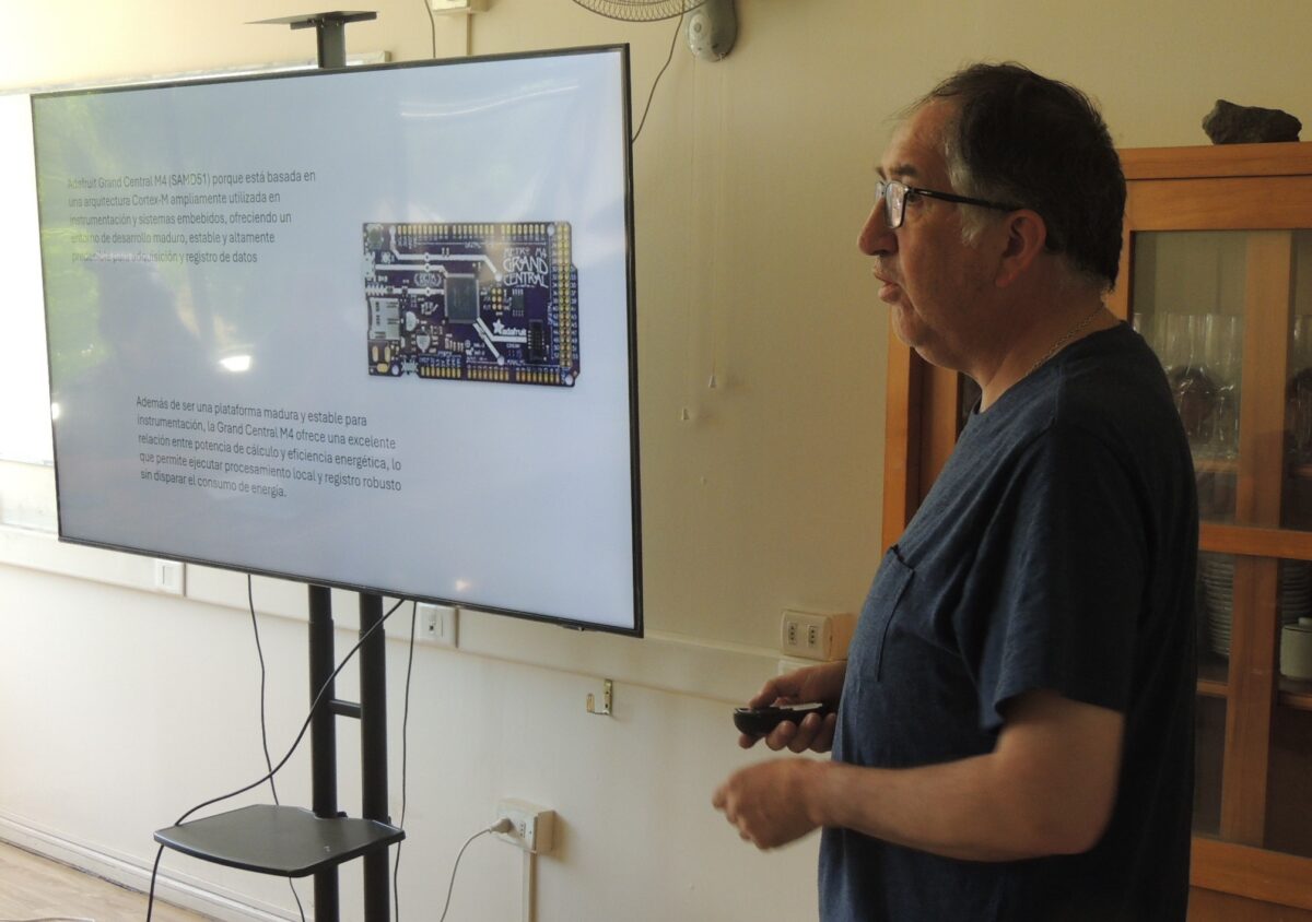 La sesión de la tarde se centró en aplicaciones instrumentales, procesos climáticos de gran escala y efectos territoriales de los incendios. En las siguientes exposiciones principales, el Dr. Víctor Villagrán, del Laboratorio MidGeo de Geofísica UdeC, presentó el diseño y construcción de un datalogger dedicado para el Multisensor Meteorológico Vaisala, explicando su implementación en redes de monitoreo y su validación técnica. Posteriormente, el Dr. Álvaro González Reyes, del Instituto de Ciencias de la Tierra de la Universidad Austral de Chile, analizó las variaciones en la intensidad del Anticiclón Subtropical del Pacífico desde 1960 y sus vínculos con cambios en temperaturas, precipitaciones y humedad del suelo en Chile centro-sur.