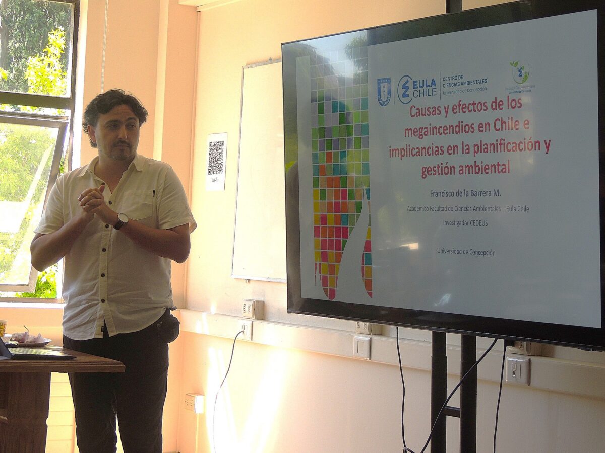 En el bloque final del seminario, el Dr. Francisco de la Barrera, de la Facultad de Ciencias Ambientales de la UdeC, abordó los efectos de los megaincendios en Chile, como los relacionados con la salud humana; y sus implicancias para la planificación y la gestión ambiental, subrayando la necesidad de fortalecer la resiliencia territorial frente a estos eventos. La jornada culminó con la charla del Dr. Andrés Holz, investigador del Global Environmental Change Lab de Portland State University (EE.UU.), quien presentó una mirada eco-evolutiva del fuego como disturbio ecológico, integrando lecciones del Pacífico Noroeste de Estados Unidos y reflexionando sobre los desafíos pendientes para Chile en prevención, manejo del combustible y restauración ecológica.