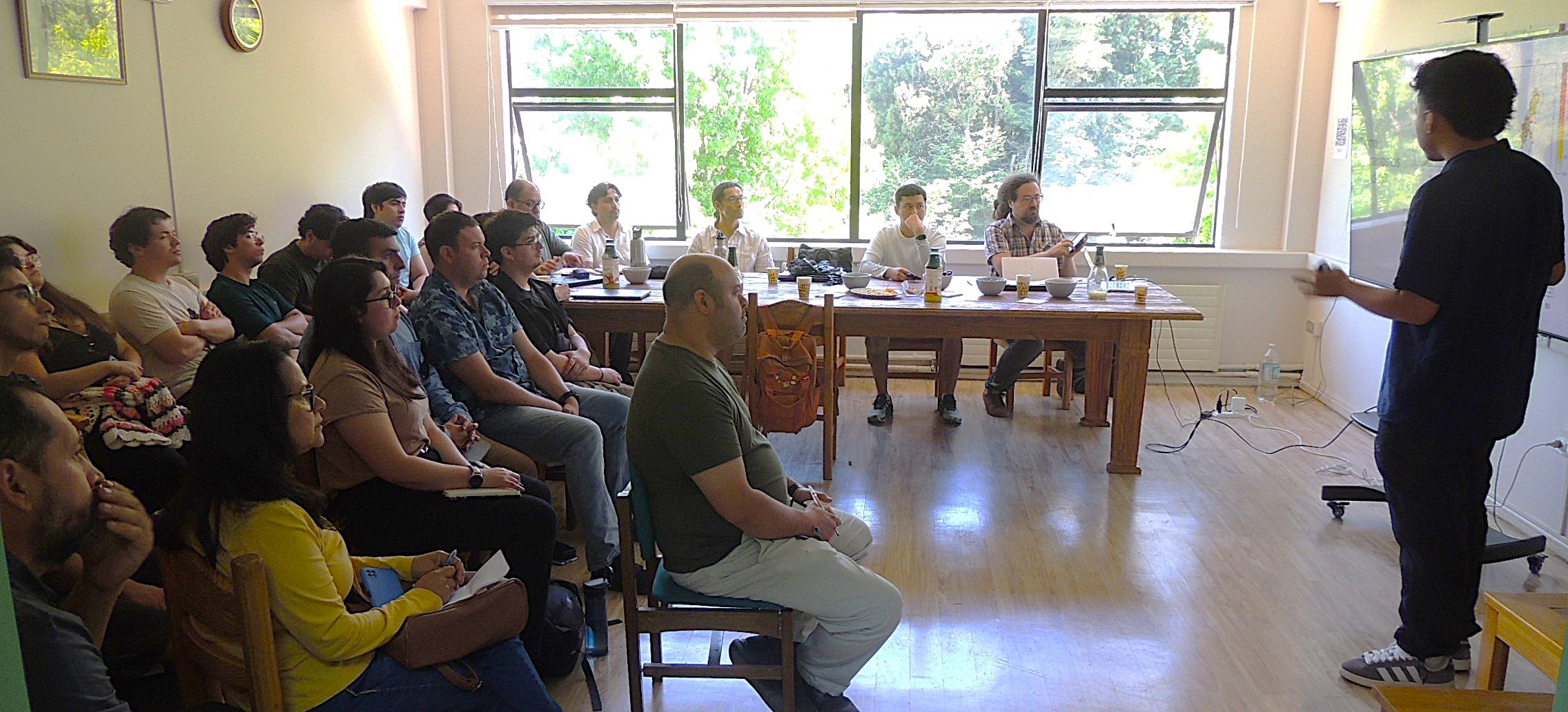 La actividad se desarrolló durante todo el día en la Sala de Reuniones de Geofísica y se enmarcó en el proyecto ANID/FONDECYT “Wildfires and Weather Variability in South-Central Chile (INTENSE)”. Y a él asistieron profesionales del Servicio Meteorológico de la Armada y de CONAF, además de estudiantes de Geofísica, del magíster de la especialidad e investigadoras e investigadores de las geociencias en general.