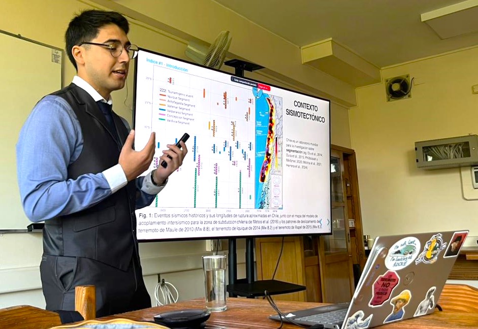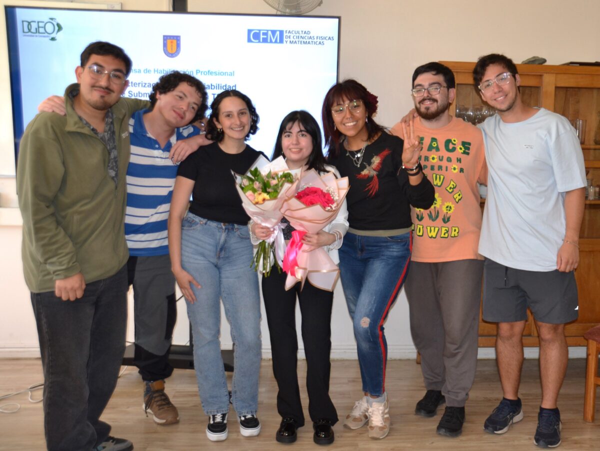 El trabajo se presentó sala de reuniones y fue positivamente evaluado por una comisión integrada por la académica Ignacia Calisto, profesora guía; el Dr. Patricio Winckler, profesor co-guía; además de los académicos Matthew Miller, Geofísica UdeC; Gonzalo Montalva y Javier Ruiz.