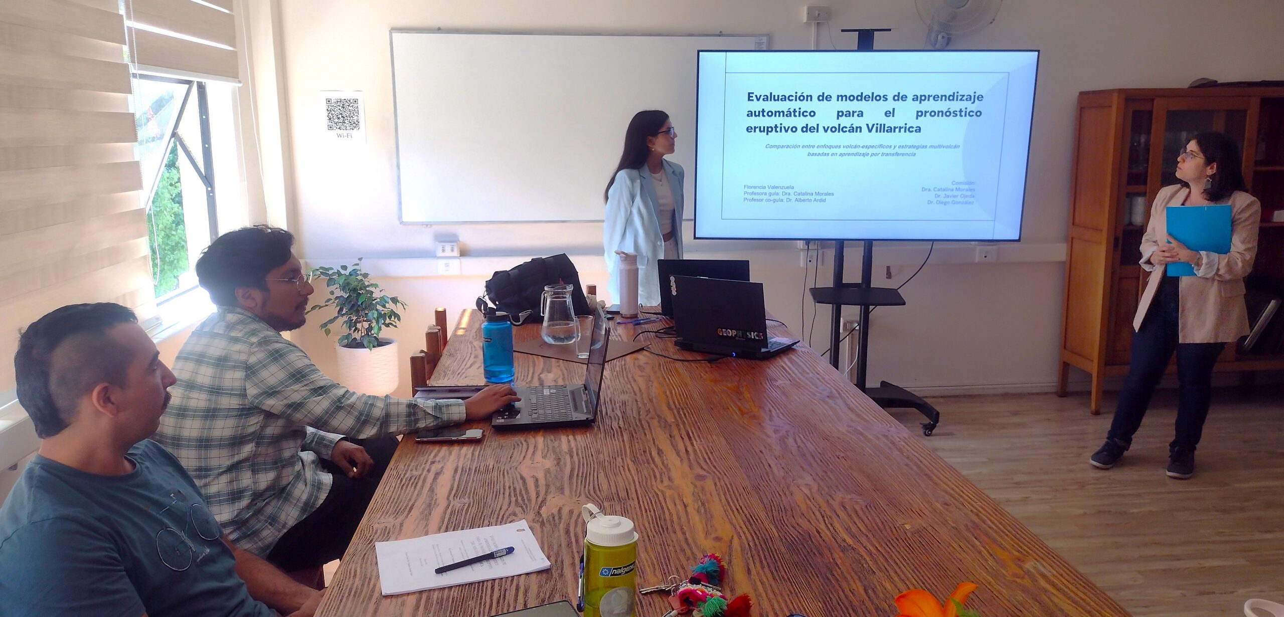 Más tarde fue el turno de Florencia Valenzuela Urzúa, quien presentó su trabajo “Evaluación de modelos de aprendizaje automático para pronóstico eruptivo del volcán Villarrica”.