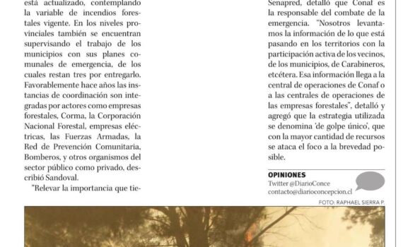 Noticia en Diairo Concepción informa acerca de la mayor probabilidad de incendios forestales este verano por altas temperaturas y vientos.