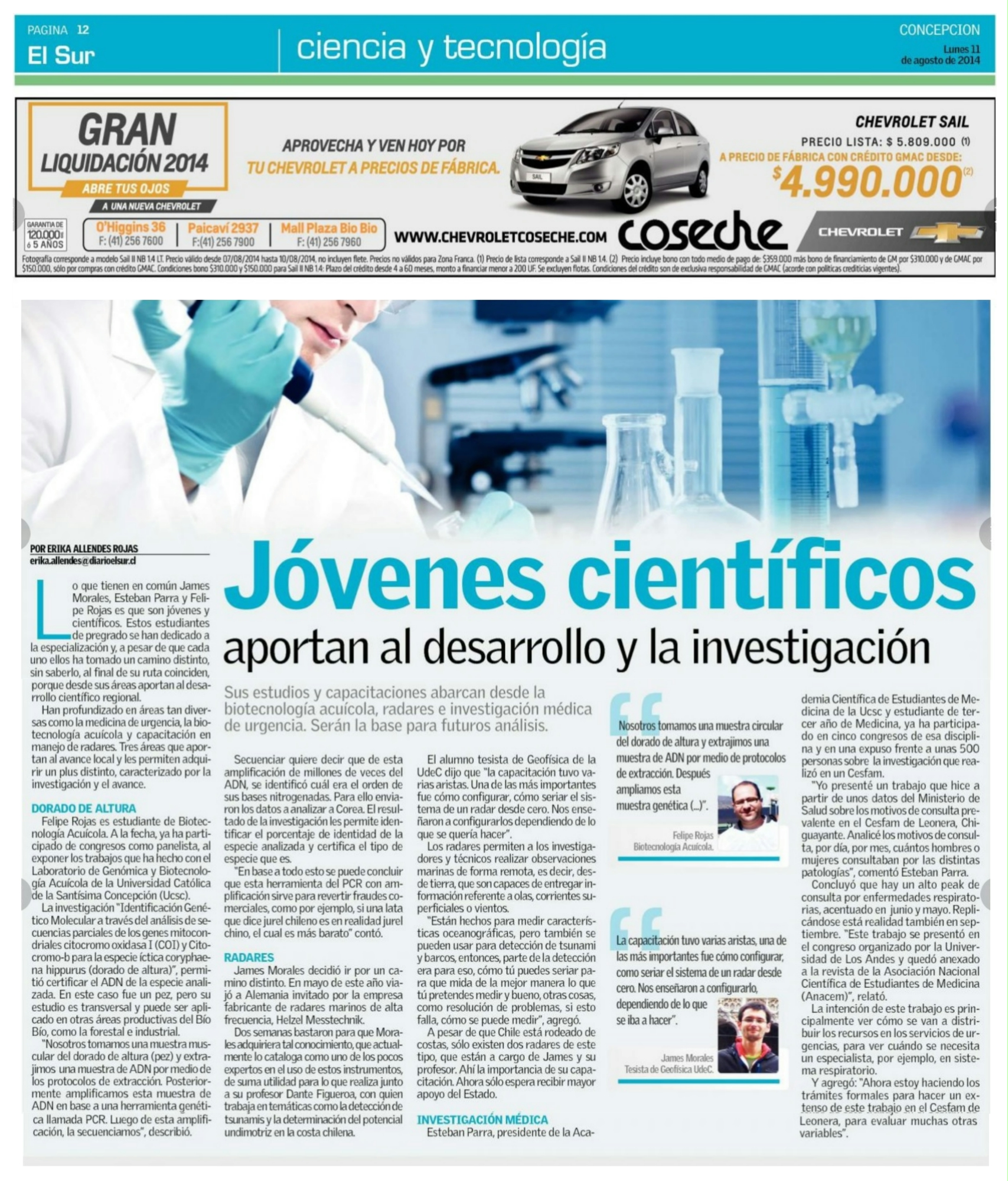 Diario El Sur, lunes 11 de agosto de 2014.