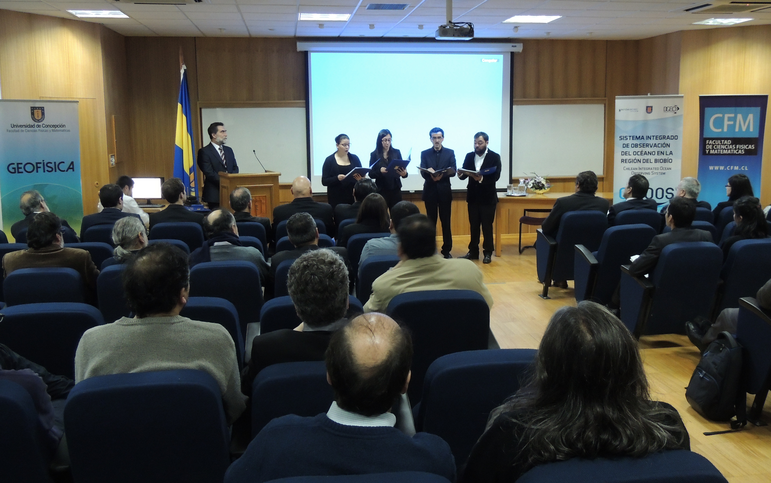 En la ceremonia participaron el Vicerrector de Investigación y Desarrollo de la UDEC, Carlos González; el Director ejecutivo de Innova Biobío, Eric Forcael; El Seremi de Gobierno de la Región del Biobío, Enrique Inostroza; Roberto Riquelme, Decano de la Facultad de Ciencias Físicas y Matemáticas; Gobernador Marítimo del Talcahuano, Capitán de Navío LT Manuel Cofré Lizana; además de concejeros regionales, académicos, alumnos, entre otros.