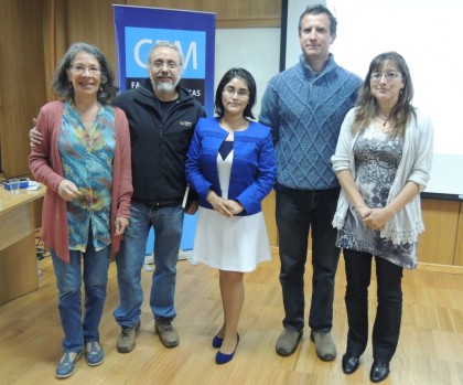A las 10 de la mañana fue el turno de la defensa de Carolina Medel, la que se llevó a cabo en el Auditorio Alamiro Robledo de la Facultad de Ciencias Físicas y Matemáticas de la UDEC, donde la alumna presentó su trabajo “Impacto de los remolinos de mesoescala y de la migración vertical sobre la distribución espacial y el crecimiento de larvas planctónicas en la Dorsal de Juan Fernández”, frente al público asistente y frente a su comisión evaluadora, constituida por su profesora guía, Dra. Carolina Parada (DGEO, Universidad de Concepción), Dr. Oscar Pizarro (DGEO, Universidad de Concepción), Dr. Andrés Sepúlveda (DGEO, Universidad de Concepción), y la Dra. Carmen Morales (Depto. Oceanografía, Universidad de Concepción). Finalmente, y después de responder a cada una de las preguntas, Carolina fue aprobada de manera indiscutida por sus profesores.