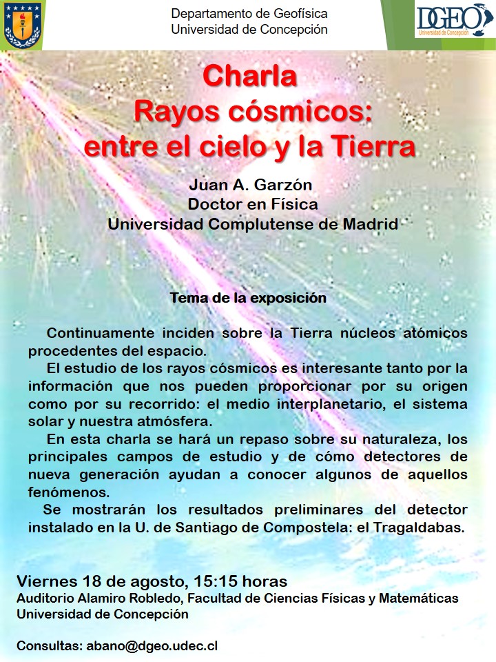 Este viernes 18 de agosto se realizará el seminario «Rayos cósmicos: entre el cielo y la Tierra», ocasión en que el doctor en Física de la Universidad Complutense de Madrid, Juan Garzón, explicará qué son, cómo se estudian y de qué manera hoy son detectados y conocidos sus impactos.