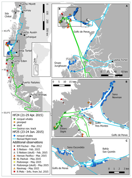 También se comprobó que el Golfo de Penas es uno de los sitios principales de alimentación de las ballenas Sei fuera de las regiones polares, donde mayormente se concentran.