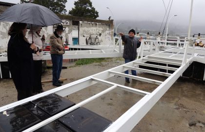 A sólo días de que el prototipo GUH para generar energía undimotriz sea puesto en el mar, la subsecretaria del Ministerio de Energía, Jimena Jara Quilodrán, visitó la innovadora obra de ingeniería en el recinto que posee la Universidad de Concepción en Dichato. Bajo una persistente lluvia, la autoridad, los creadores del proyecto y profesionales de Geofísica de la casa de estudios conocieron los últimos detalles antes de iniciar sus operaciones de prueba la próxima semana.