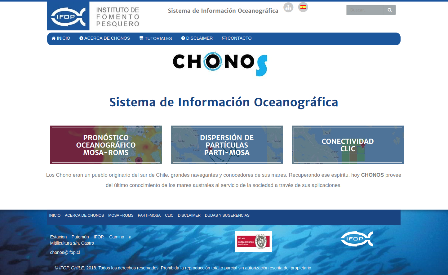 El trabajo continuo para operar y mejorar el sistema integral de predicción oceánica es realizado por el equipo de Oceanografía y Modelación del Departamento de Medio Ambiente de la División de Investigación Acuícola del IFOP, con sede en Castro; sistema que ha contado con la colaboración directa en su desarrollo y mejora permanente del Departamento de Geofísica de la Universidad de Concepción. Su portal en la web tiene la dirección https://www.ifop.cl/chonos/