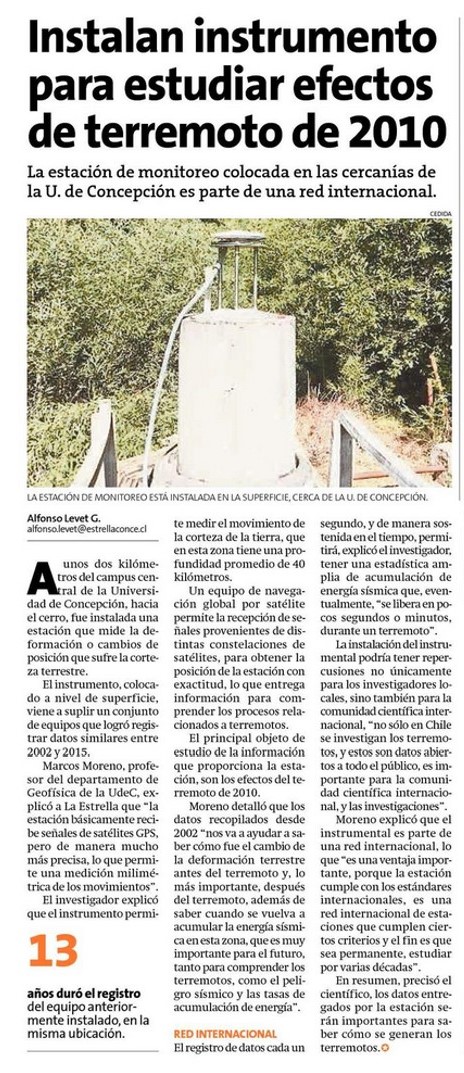 Destacados Instalan instrumento GNSS para estudiar efectos del terremoto de 2010 por Alejandro Baño Oyarce|Publicada 13 enero, 2020