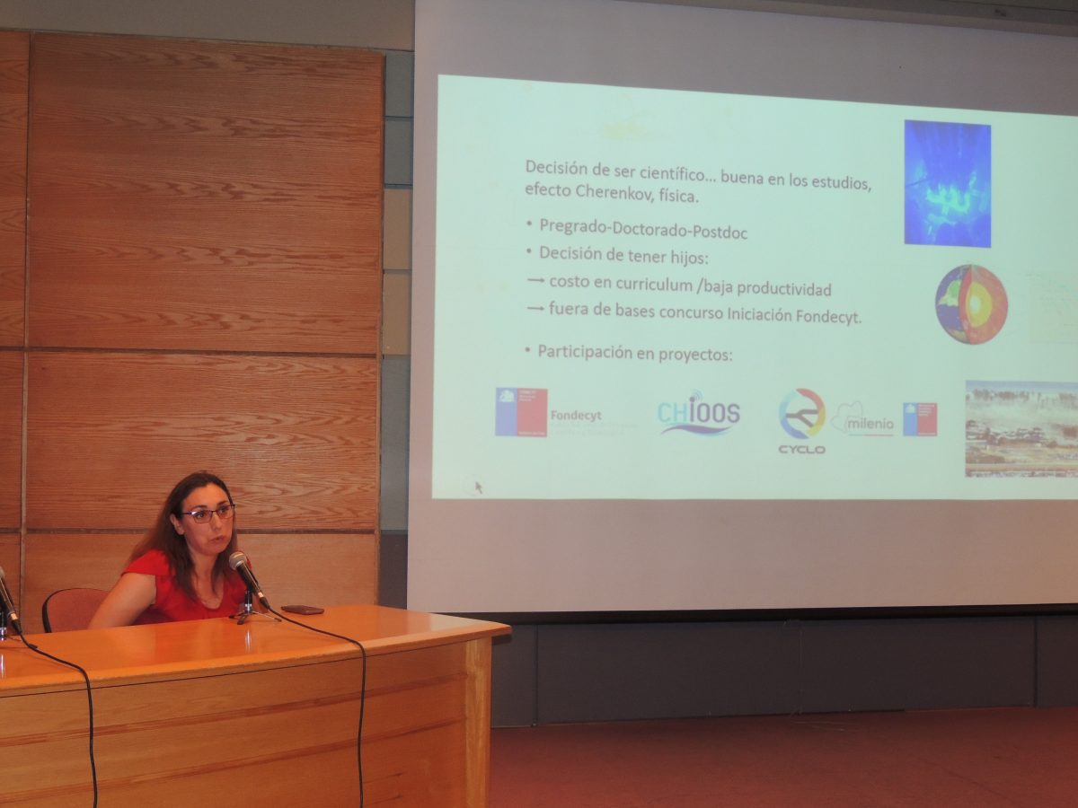 Ante un auditorio compuesto mayoritariamente por mujeres, también expusieron la sicóloga Loreto Villagrán, la médico veterinaria Camila Calderón, la ingeniera civil electrónica Pamela Guevara y la astrofísica Paulina Assman.