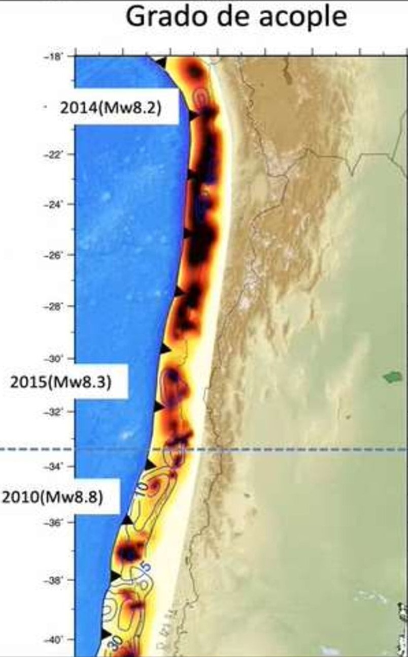 Por todo eso, ya se instaló en la zona 85 estaciones sismológicas, las que se suman a las 40 existentes en el área puestas por el Centro Sismológico Nacional; además de 27 GPSs que miden la deformación superficial provocada por la subducción y sus respectivos sismos. El profesor Moreno contó que ya se ha comprobado que es una zona con alta sismicidad, lo que se ha podido determinar gracias a la alta concentración de instrumentos de medición. Tecnología que sigue observando la sismicidad y la deformación o la generación de un nuevo terremoto lento en esta área, la que está formada por tres segmentos, asperezas o áreas trabadas entre placas con potencial resultado de terremotos.