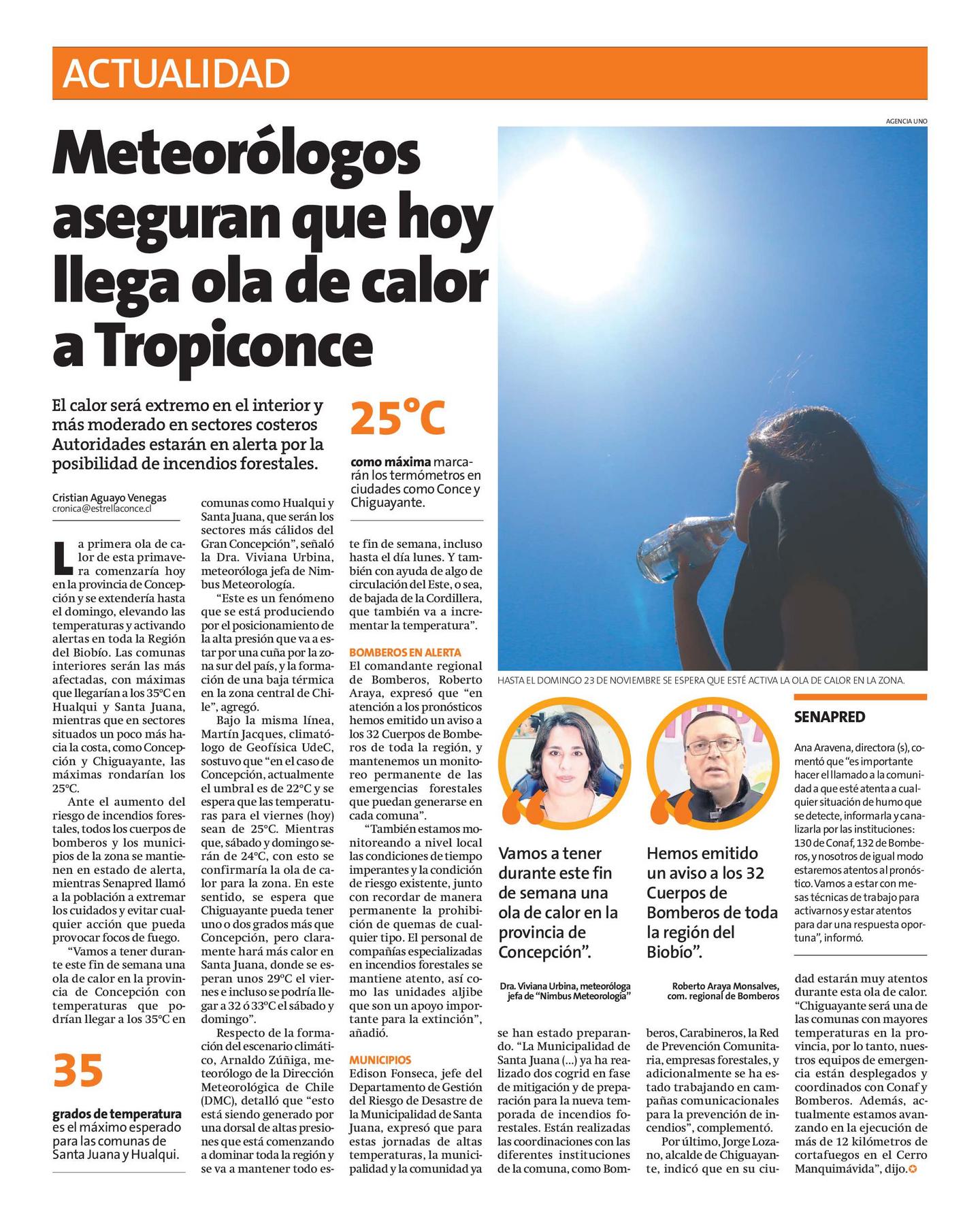 | Anticipan condiciones meteorológicas que elevena riesgo de incendios forestales en verano (y 2) | Diario Concepción | 30 de octubre | Martín Jacques Coper |
