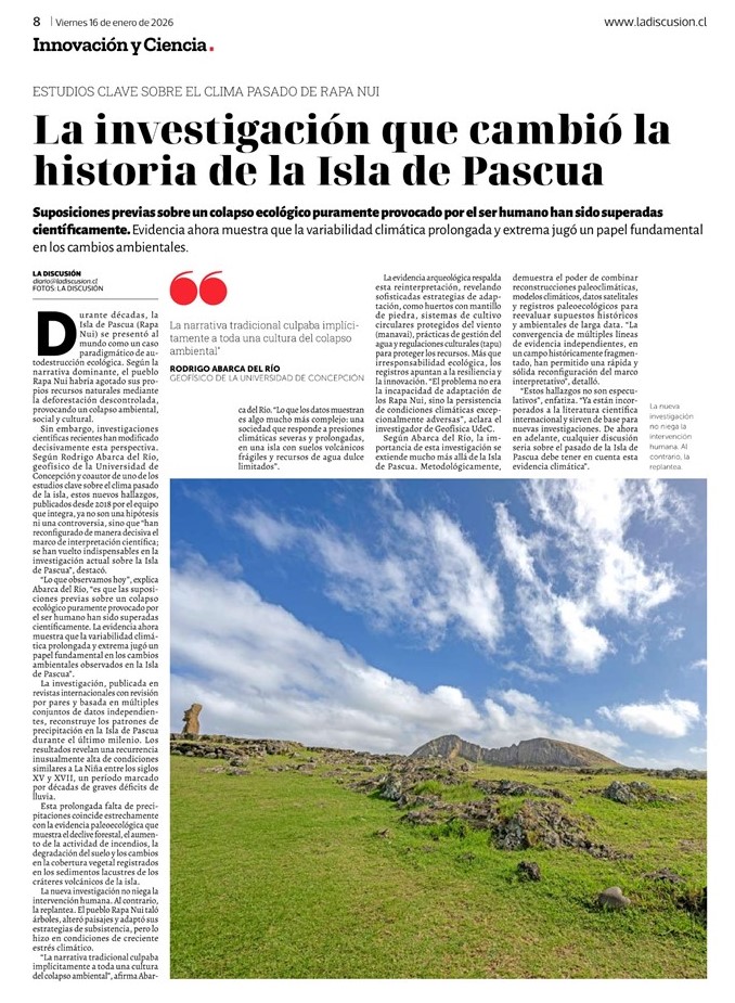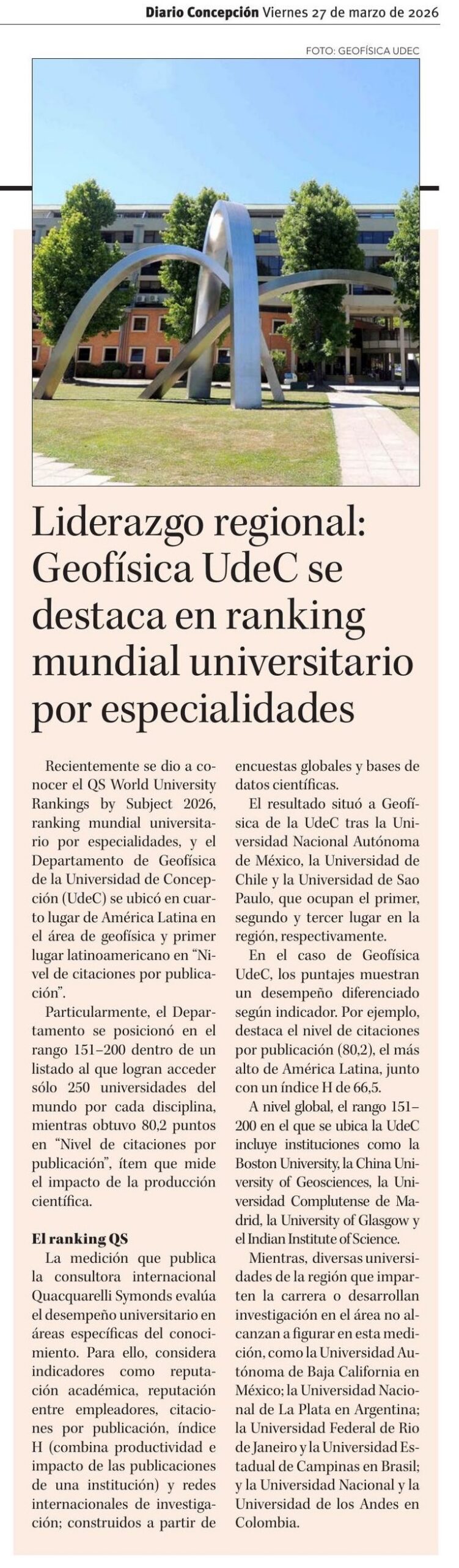 | Investigadores de Geofísica UdeC liderarán en Sudamérica estudio satelital de los océanos | Diario La Discusión | 1 de abril | Rodrigo Abarca del Río |