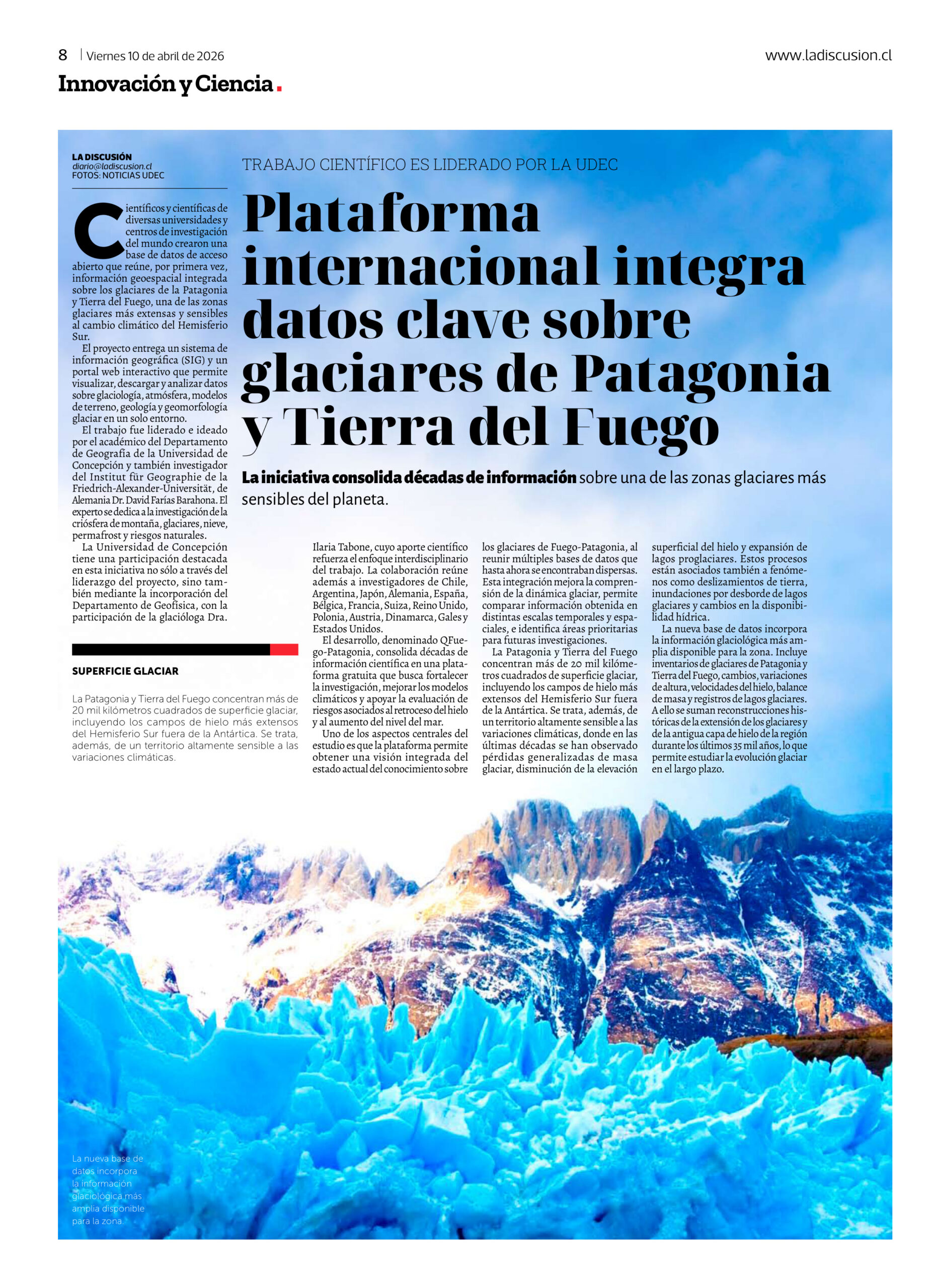 | Geofísicos de la UdeC finalizan participación en crucero científico «Cabo de Hornos» | La Discusión | 8 de octubre | Oscar Pizarro Arrigada |